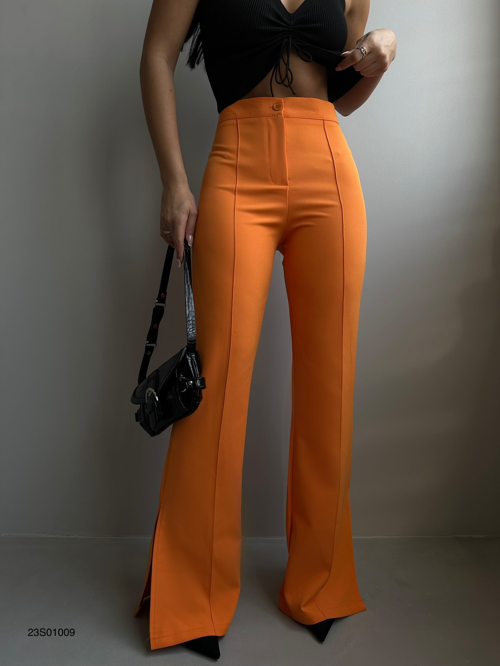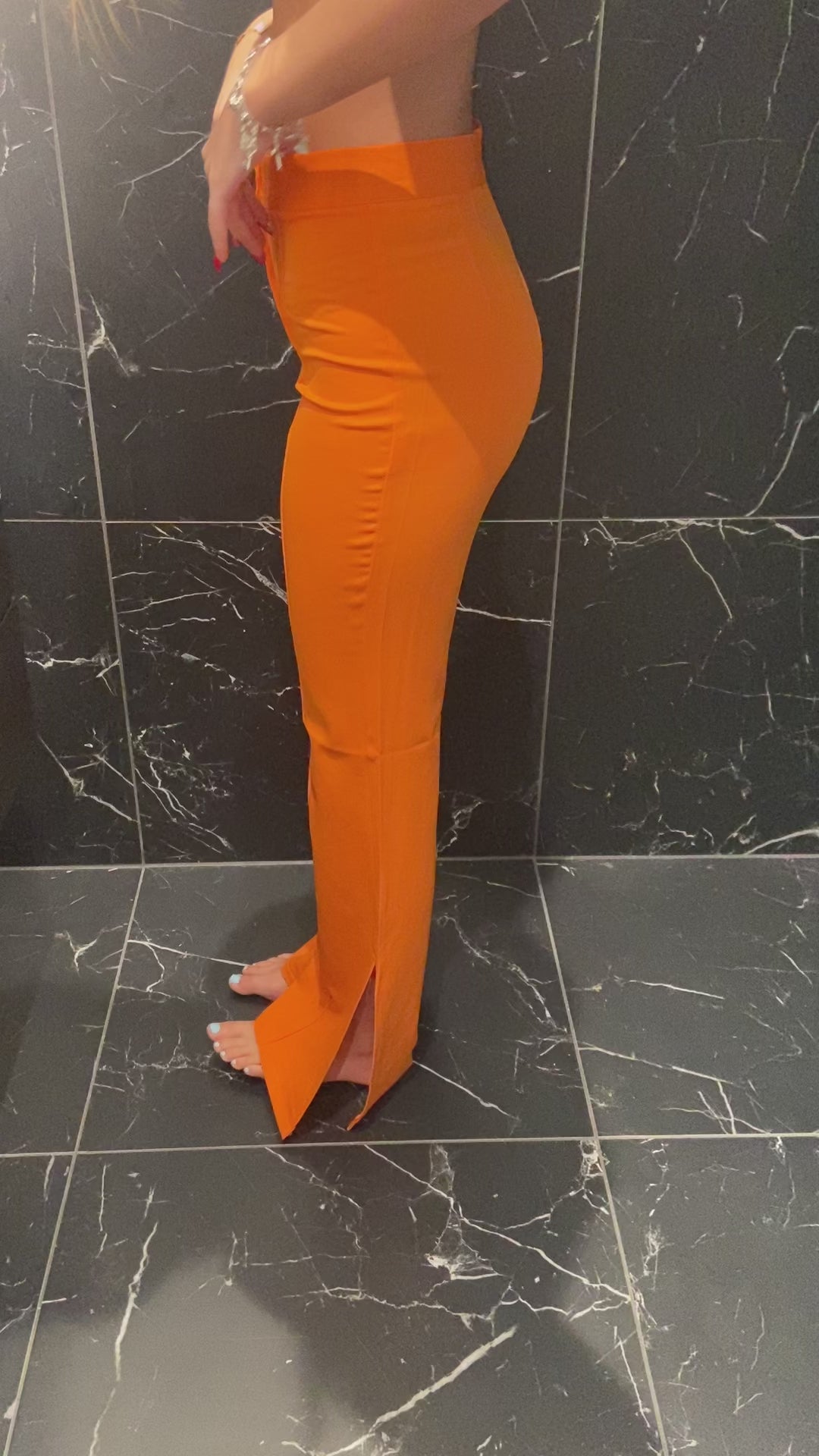 Vill du sticka ut från mängden? Då är dessa fantastiska kostymbyxor något för dig! Kostymbyxor i high waist med slitsdetaljer nedtill. Kommer i färgen orange.